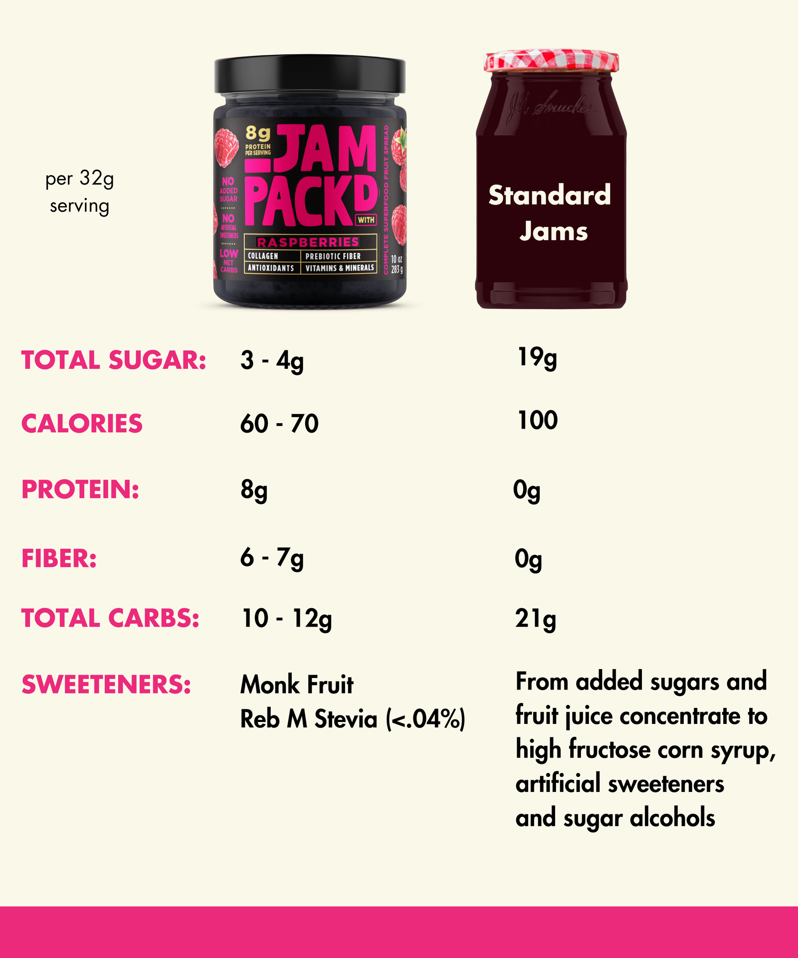 I am currently enjoying my first 3 pack of jams. All 3 flavors are good and spread easily. I can load up my morning toast with jam and not feel like I am loading up on sugar. The fruit flavor comes through with mild sweetness. I love knowing that it's good for me and has protein as well. The raspberry is my favorite!